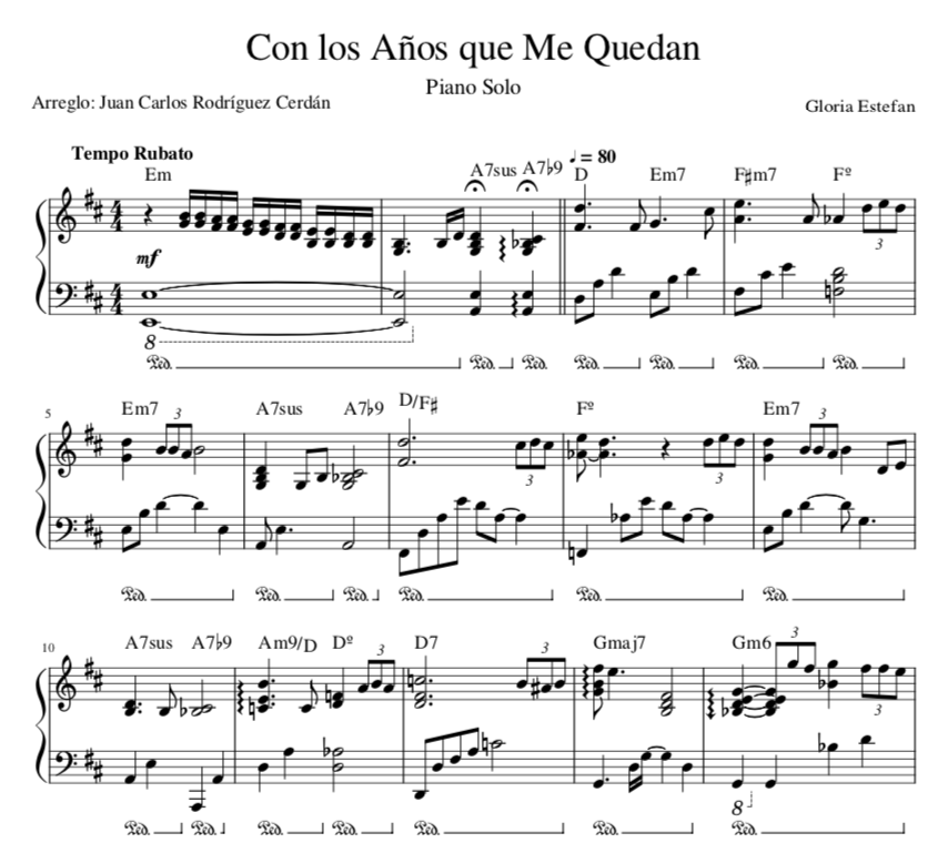 Con los Años que Me Quedan - Gloria Estefan - Partitura para Piano